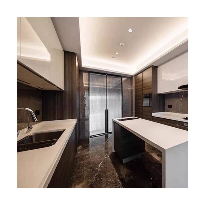 Armário de cozinha completo de placas de melamina brilhantes com bordas planas 2