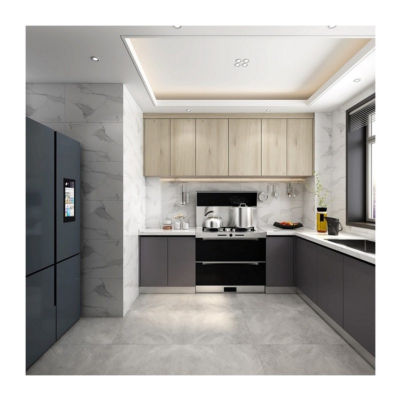 Armário de cozinha de luxo impermeável feito de MDF com design personalizado e acabamento de laca 18