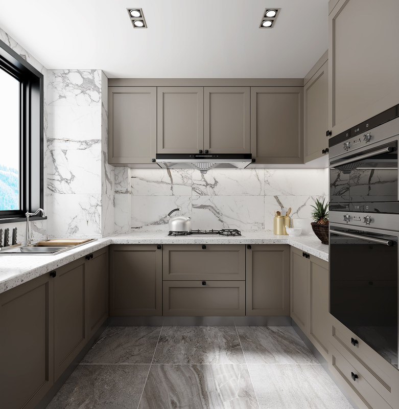 Armário de cozinha de luxo impermeável feito de MDF com design personalizado e acabamento de laca 7