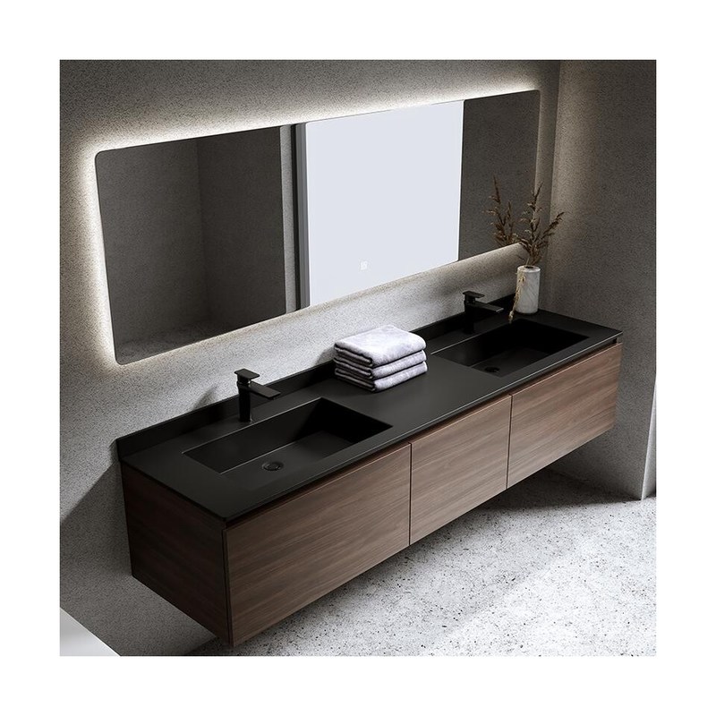 Estilo moderno retângulo Double Sink Luxury Custom Apartamento Banheiro Vanity 10