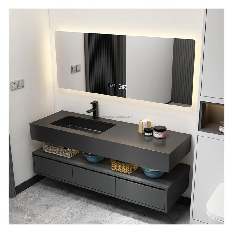 Armário de banho de laca escura de design moderno para apartamentos e hotéis 8