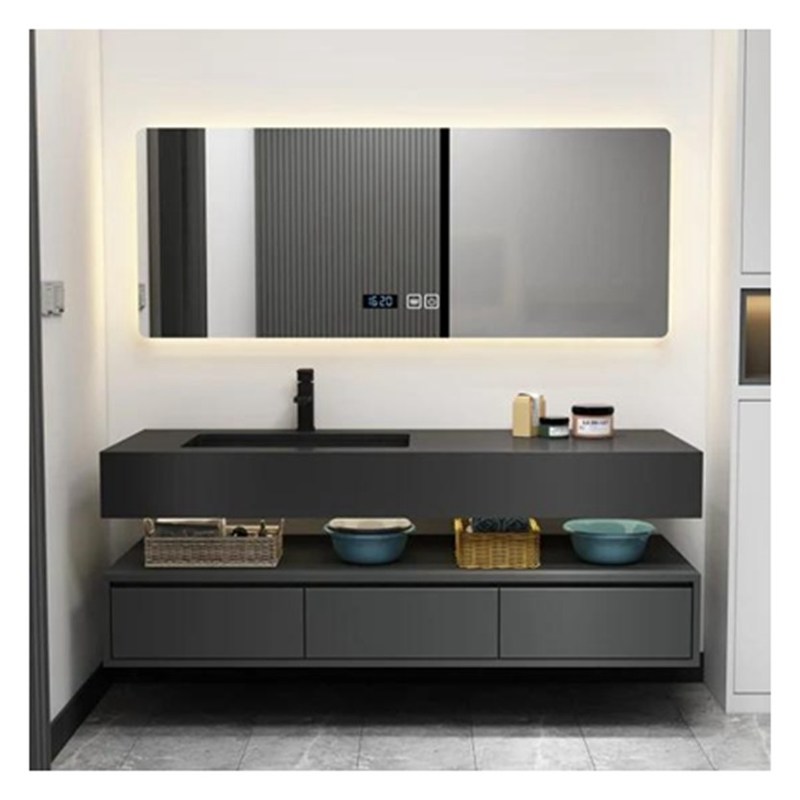 Armário de banho de laca escura de design moderno para apartamentos e hotéis 12