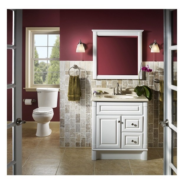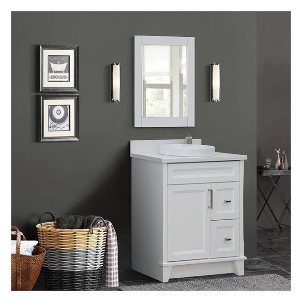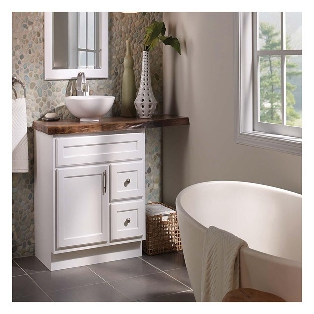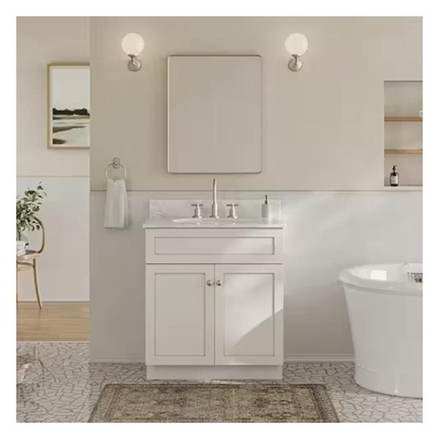 Vanidade de banheiro único com painel de porta de laca branca e construção de madeira maciça 25