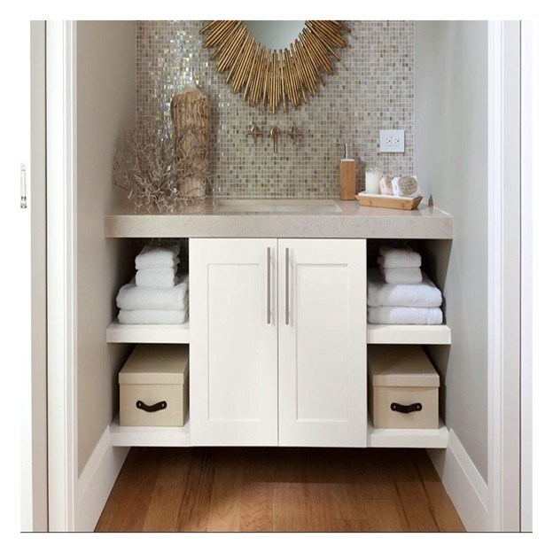 Vanidade de banheiro único com painel de porta de laca branca e construção de madeira maciça 12