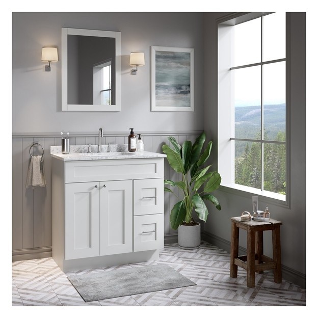 Vanidade de banheiro único com painel de porta de laca branca e construção de madeira maciça 2