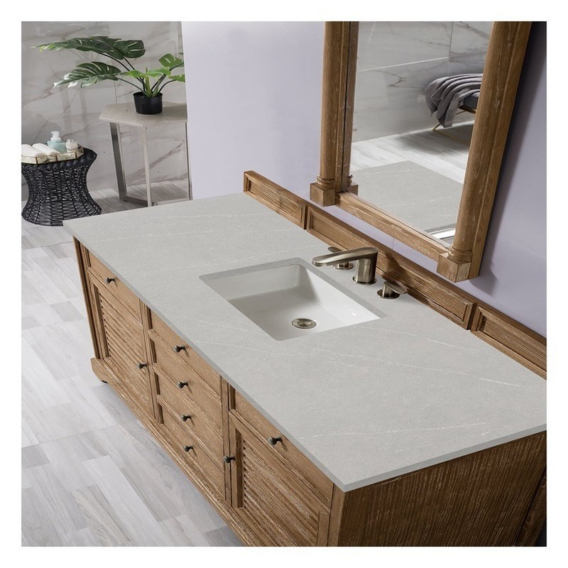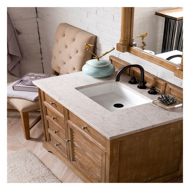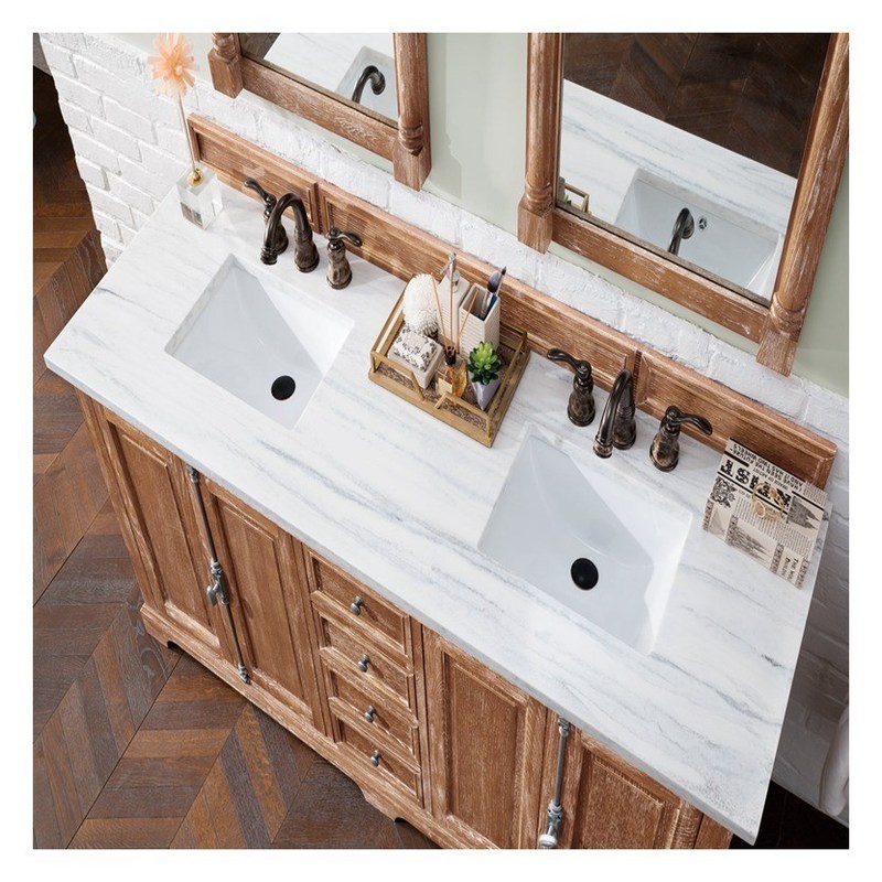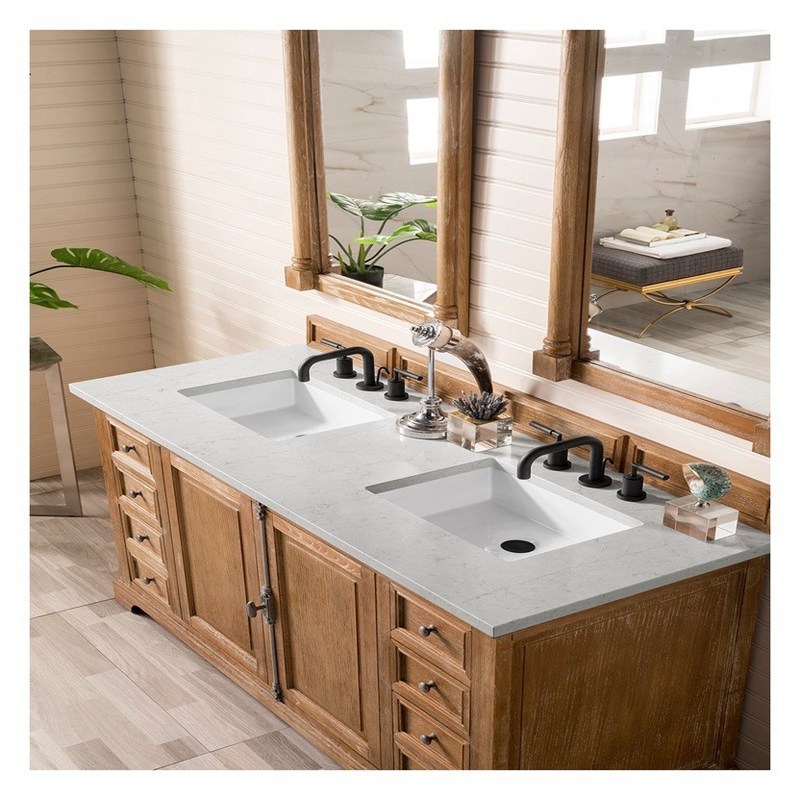 Banheiro de madeira maciça de luxo com banheiro de pedra branca e torneira incluída 15