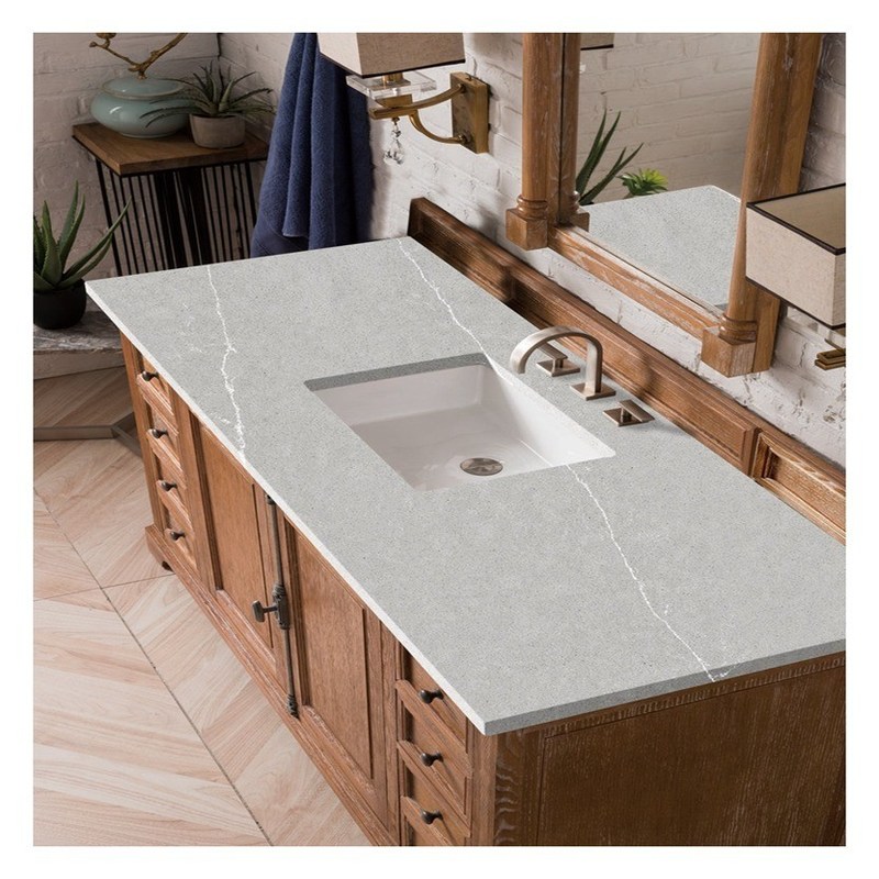 Banheiro de madeira maciça de luxo com banheiro de pedra branca e torneira incluída 23
