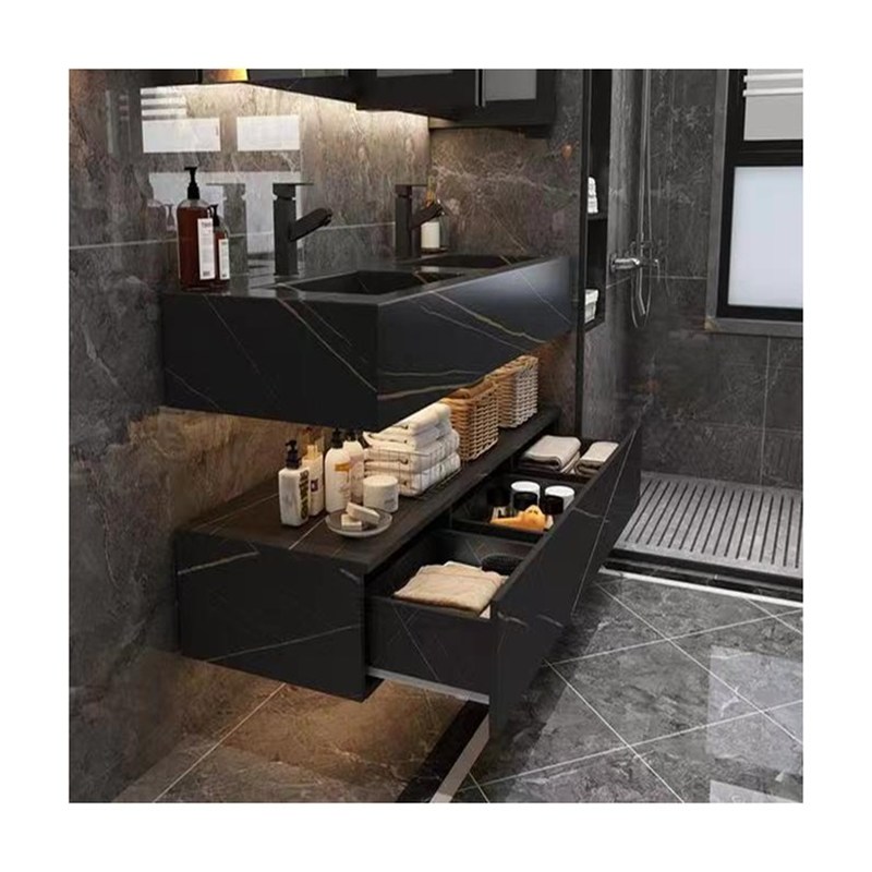 Estilo moderno Alemanha Armários de banheiro de madeira preta e vanidades com lavatório leve 5