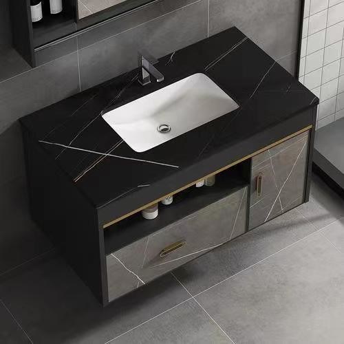 Estilo moderno Alemanha Armários de banheiro de madeira preta e vanidades com lavatório leve 24